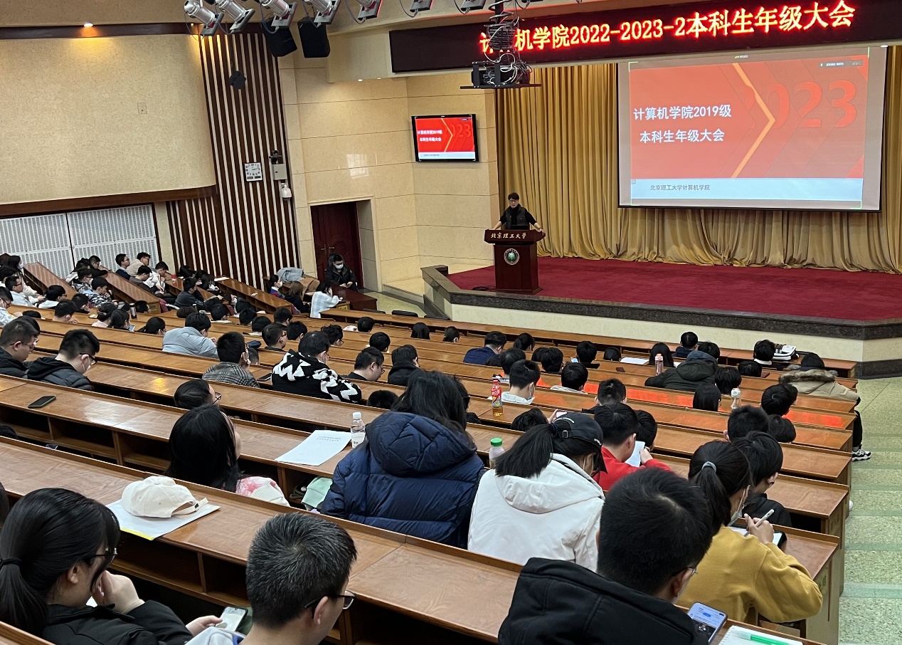 为引导本科生职业生涯规划,做好本科生毕业各项工作,3月1日下午,六合宝典官网 于中心教学楼报告厅召开算机学院2019级本科生年级大会。六合宝典官网 党委副书记、副院长奚英伦,本科生教学干事孟春,就业干事杨毅,团委书记史继筠,本科生辅导员曾杨杰出席会议,全体2019级本科生参加会议。会议由曾杨杰主持。