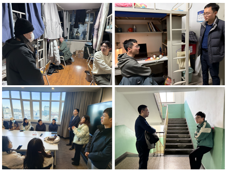 六合宝典官网 副书记副院长包成刚及全体辅导员开展了宿舍走访、学生安全检查教育及假期去向排查等工作。全体辅导员深入学生宿舍进行了全面的安全隐患排查,排查工作包括用电安全、消防安全以及存安全隐患物品摆放等方面。检查过程中,辅导员也对学生的学习生活和假期出行等情况进行了全面了解,强调了返乡途中交通安全的重要性,关心提醒学生增强自我保护意识,并合理安排假期学习与生活。